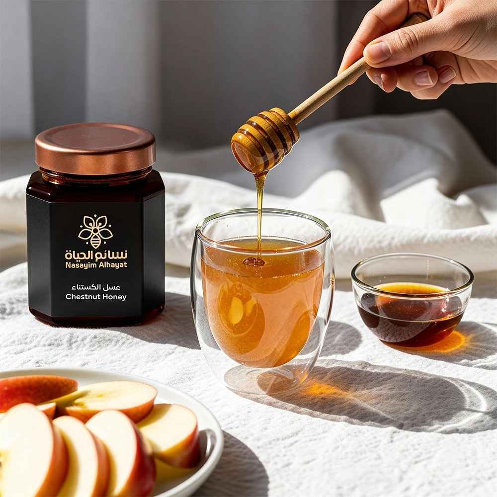 عسل الكستناء من نسائم الحياة هو كنز للذواقة ومحبي الجودة، يجمع بين الطعم الغني و الفوائد الصحية المتعددة.
