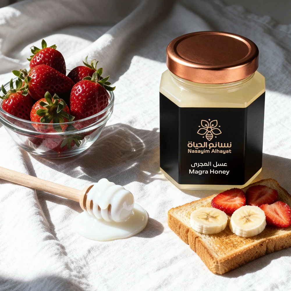 عسل المجرى الروسي طبيعي خام بقوام كثيف وطعم قوي، مستخرج من مناحل روسية بفحص جودة، مناسب للمناعة والطاقة اليومية